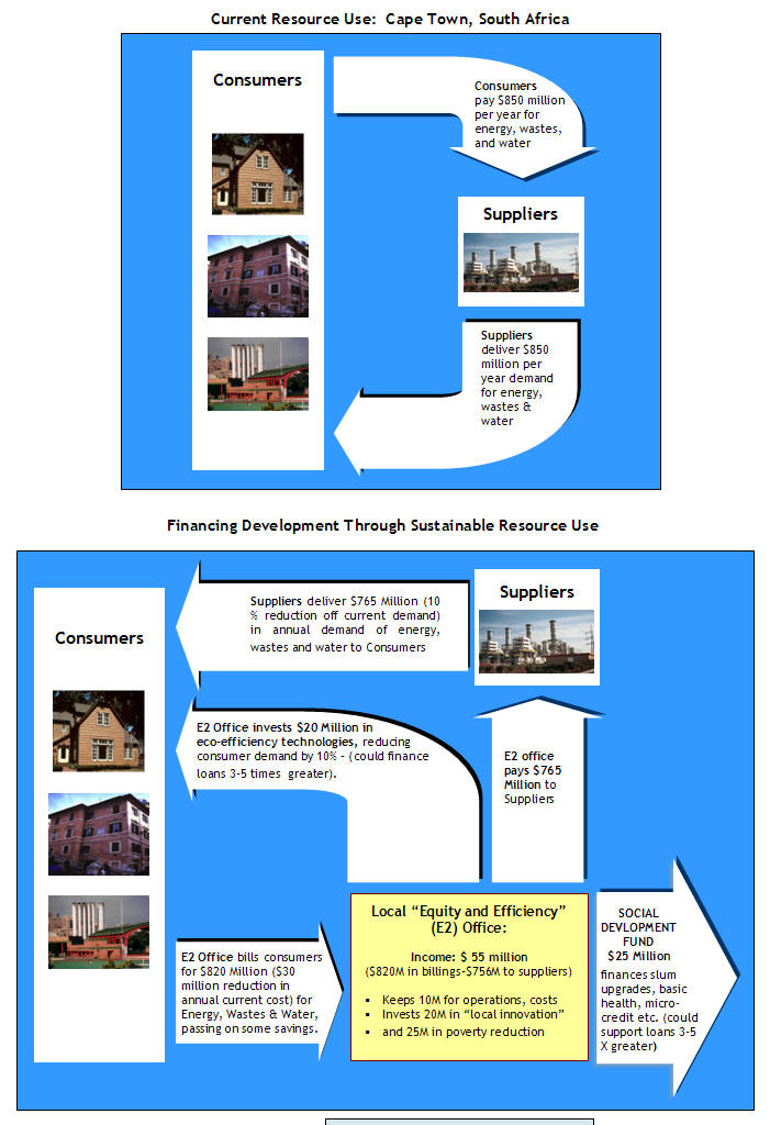 The key is to create a dedicated office (the Efficiency and Equity "E2" Office) that would be mandated to promote more sustainable resource use. The E2 office would provide technical assistance, working capital, and possibly loans to help consumers use resources more efficiently. The E2 office would keep a share of the benefits its activities deliver, and use these to promote social development.
